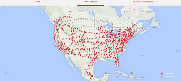 在通電美國網絡目前已在下面藍色的大氣泡現場站現場,大灰的有“即將推出”,而小家伙們“有計劃地王”,但還沒有具體的地址/位置。